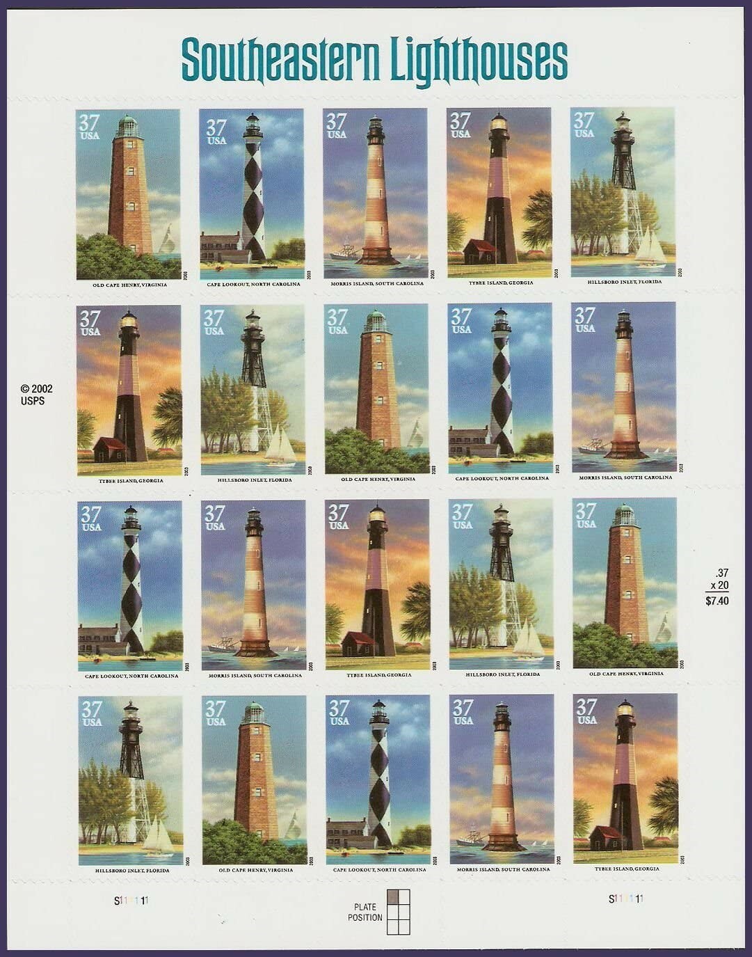 Southeastern Lighthouses Sheet of Twenty 37 Cent Postage Stamps Scott 3787-91