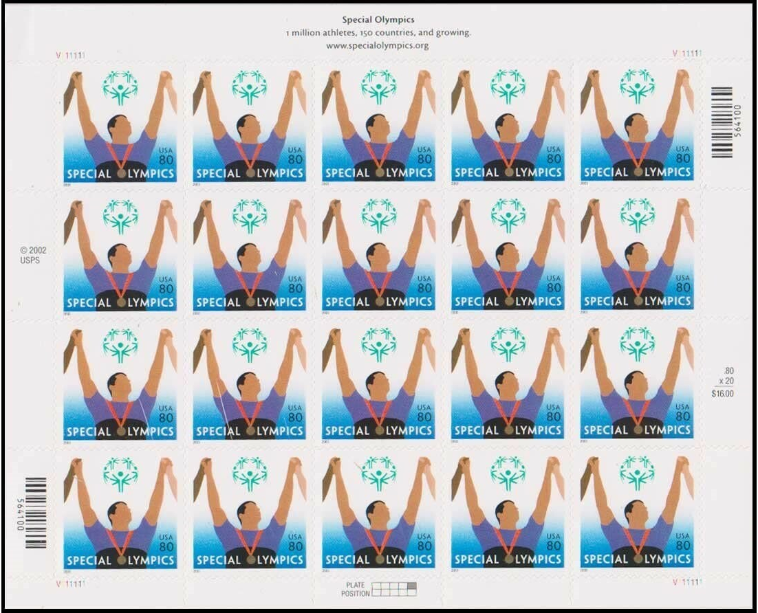 Special Olympics Sheet of Twenty 80 Cent Postage Stamps Scott 3771