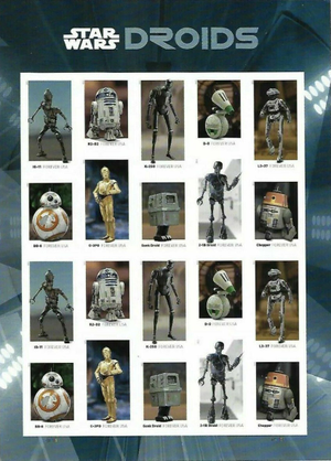 Star Wars Droids Sheet of Twenty Current Rate Postage Stamps Scott 5573-82