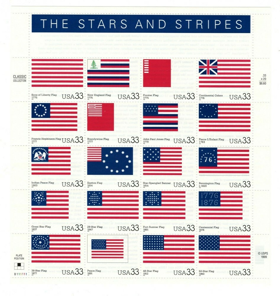 Stars and Stripes American Flags Sheet of Twenty Stamps Scott 3403a