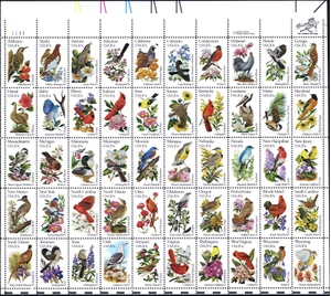 State Birds and Flowers Full Sheet of Fifty 20 Cent Stamps Scott 1953-2002