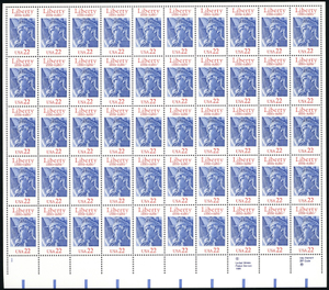 Statue of Liberty Centennial Sheet of Fifty 22 Cent Postage Stamps Scott 2224