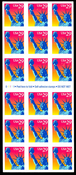 Statue of Liberty Pane of Eighteen 29 Cent Postage Stamps Scott 2599a
