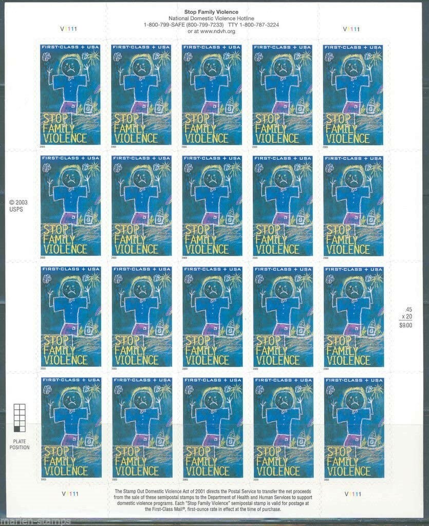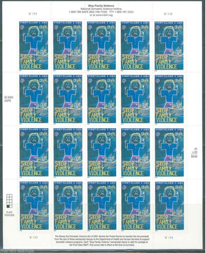 Stop Family Violence Sheet of Twenty 45 Cent Postage Stamps Scott B3