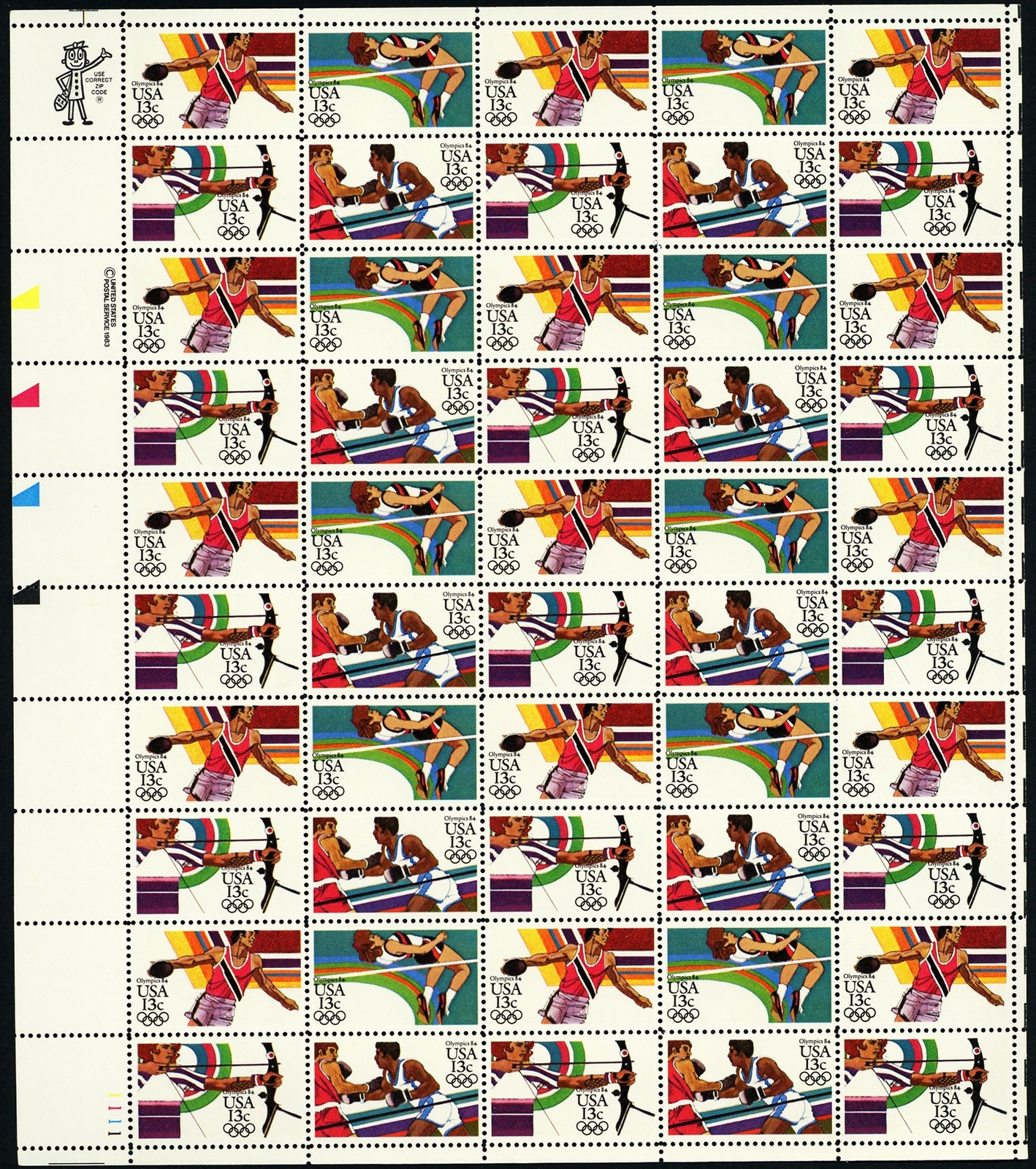 Summer Olympics Sheet of 50 of Fifty 13 Cent Postage Stamps Scott 2048-51