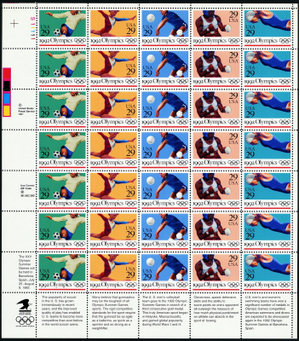 Summer Olympics Sheet of Thirty Five 29 Cent Postage Stamps Scott 2637-41