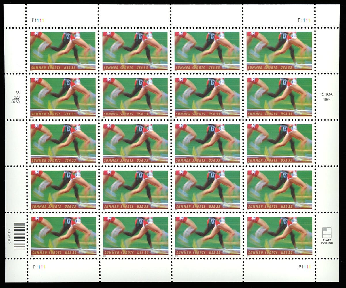 Summer Sports Sheet of Twenty 33 Cent Postage Stamps Scott 3397