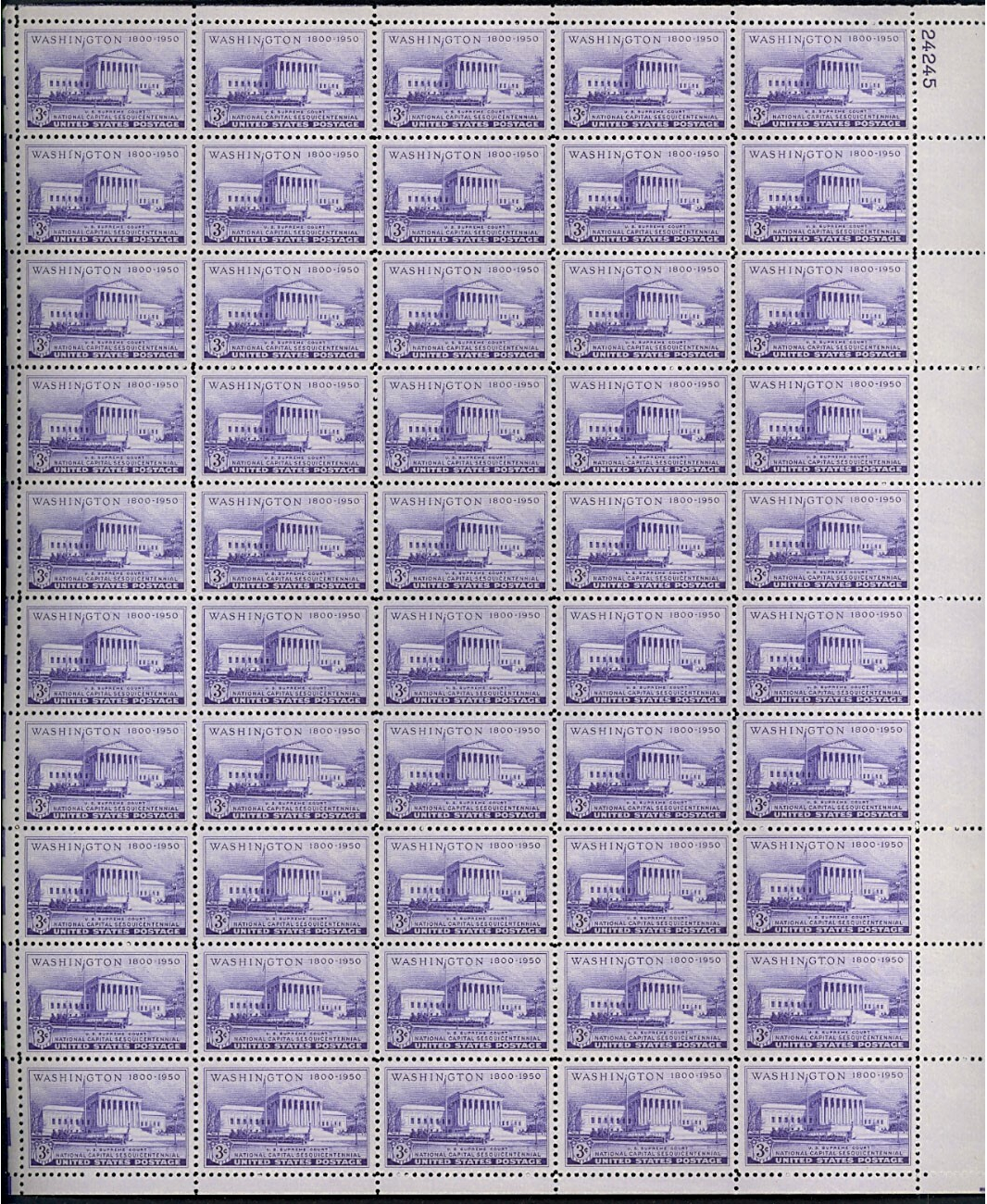 Supreme Court Building Sheet of Fifty 3 Cent Postage Stamps Scott 991