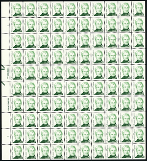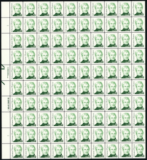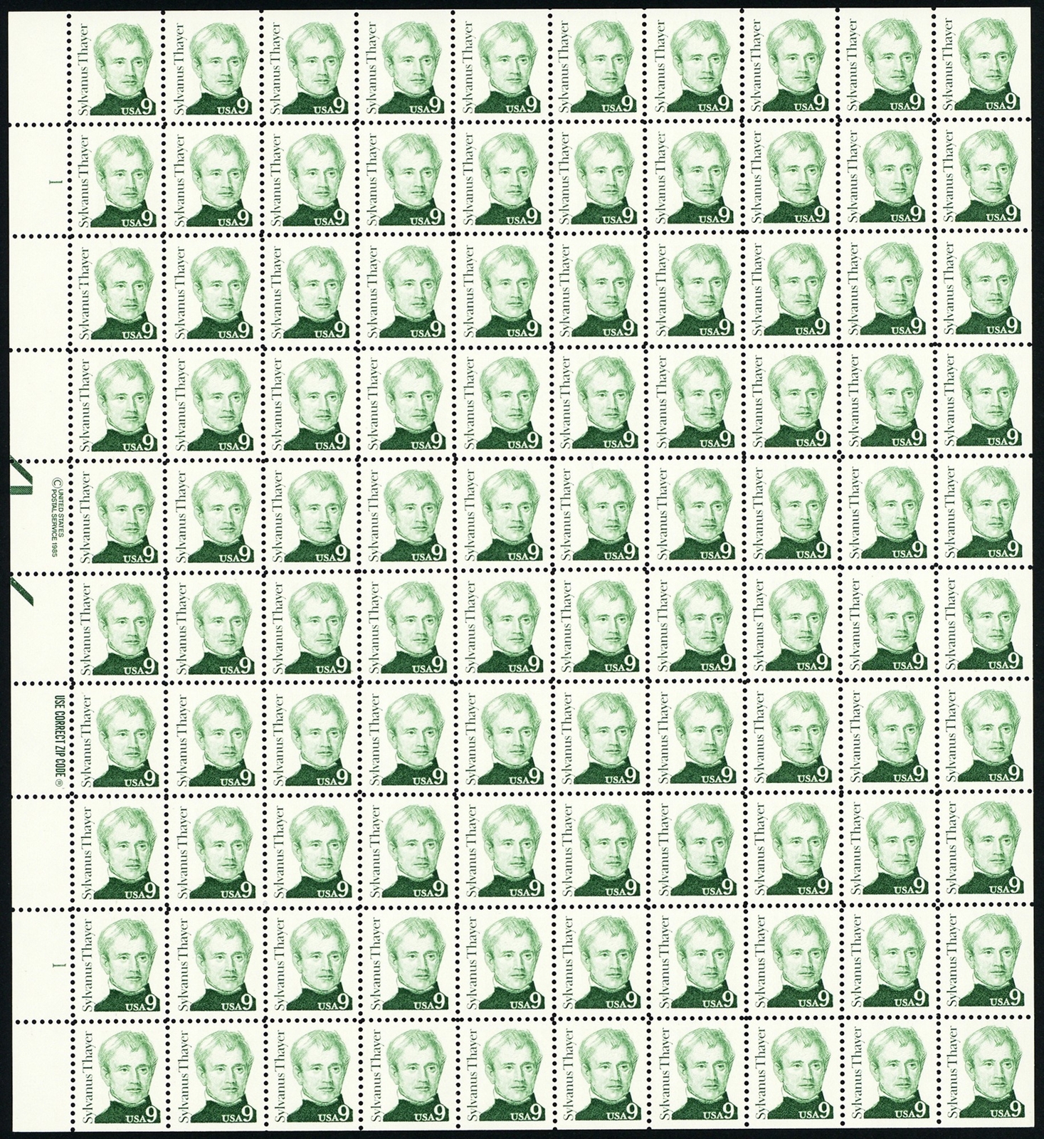 Sylvanus Thayer Sheet of One Hundred 9 Cent Postage Stamps Scott 1852