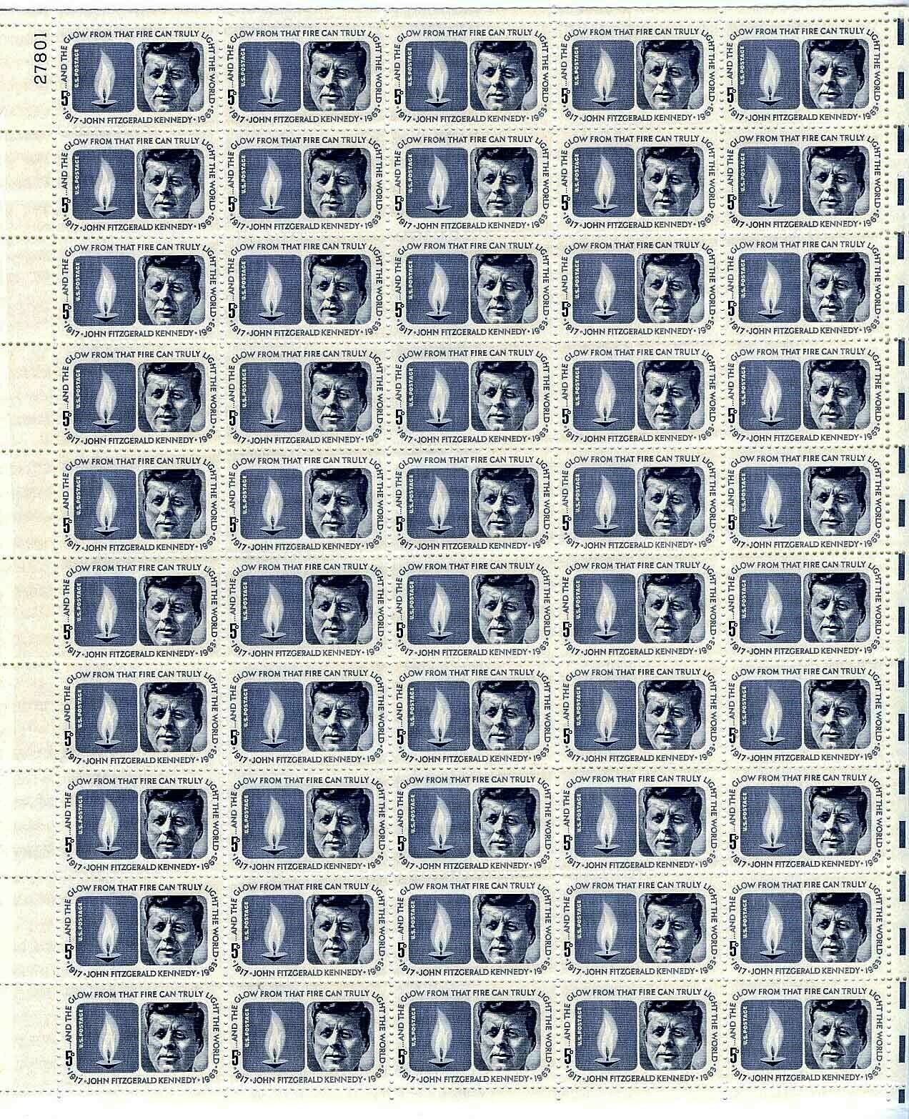 TEN SHEETS John F. Kennedy Sheet of 50 5¢ Postage Stamps Scott 1246