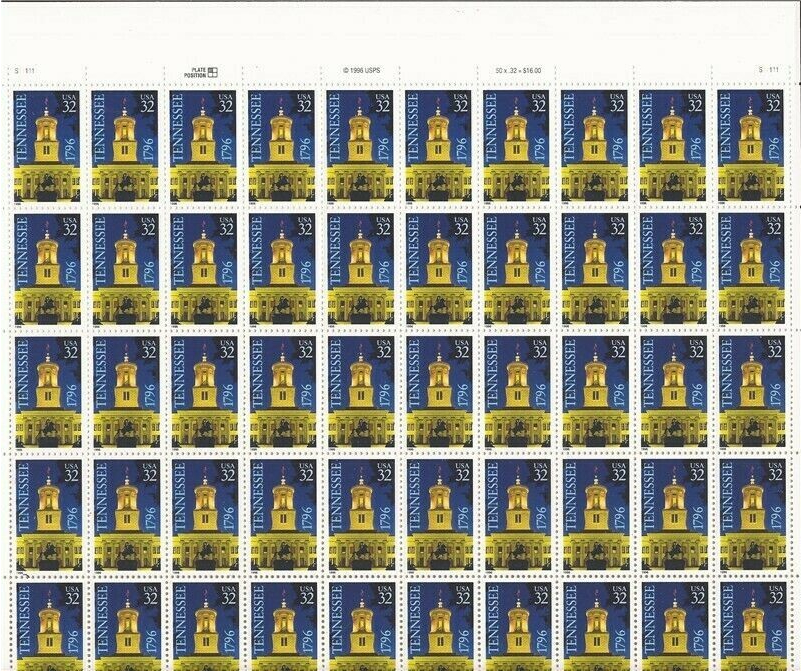 Tennessee Bicentennial Pane of Fifty 32 Cent Postage Stamps Scott 3070
