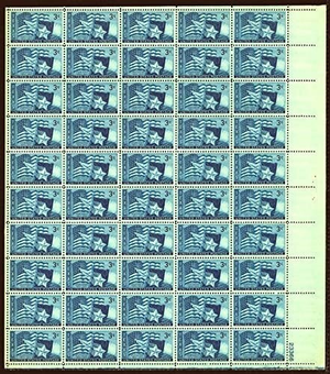 Texas Statehood Sheet of Fifty 3 Cent Postage Stamps Scott 938