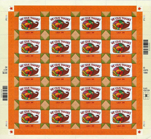Thanksgiving Pane of Twenty 34 Cent Postage Stamps Scott 3546