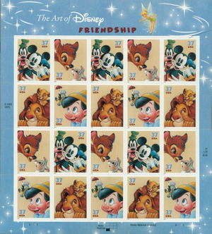 The Art of Walt Disney Friendship Sheet of Twenty Stamps Scott 3865-68