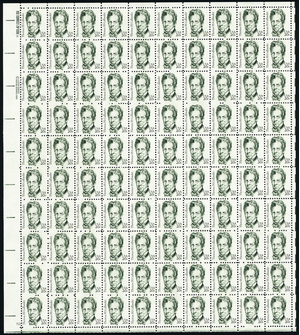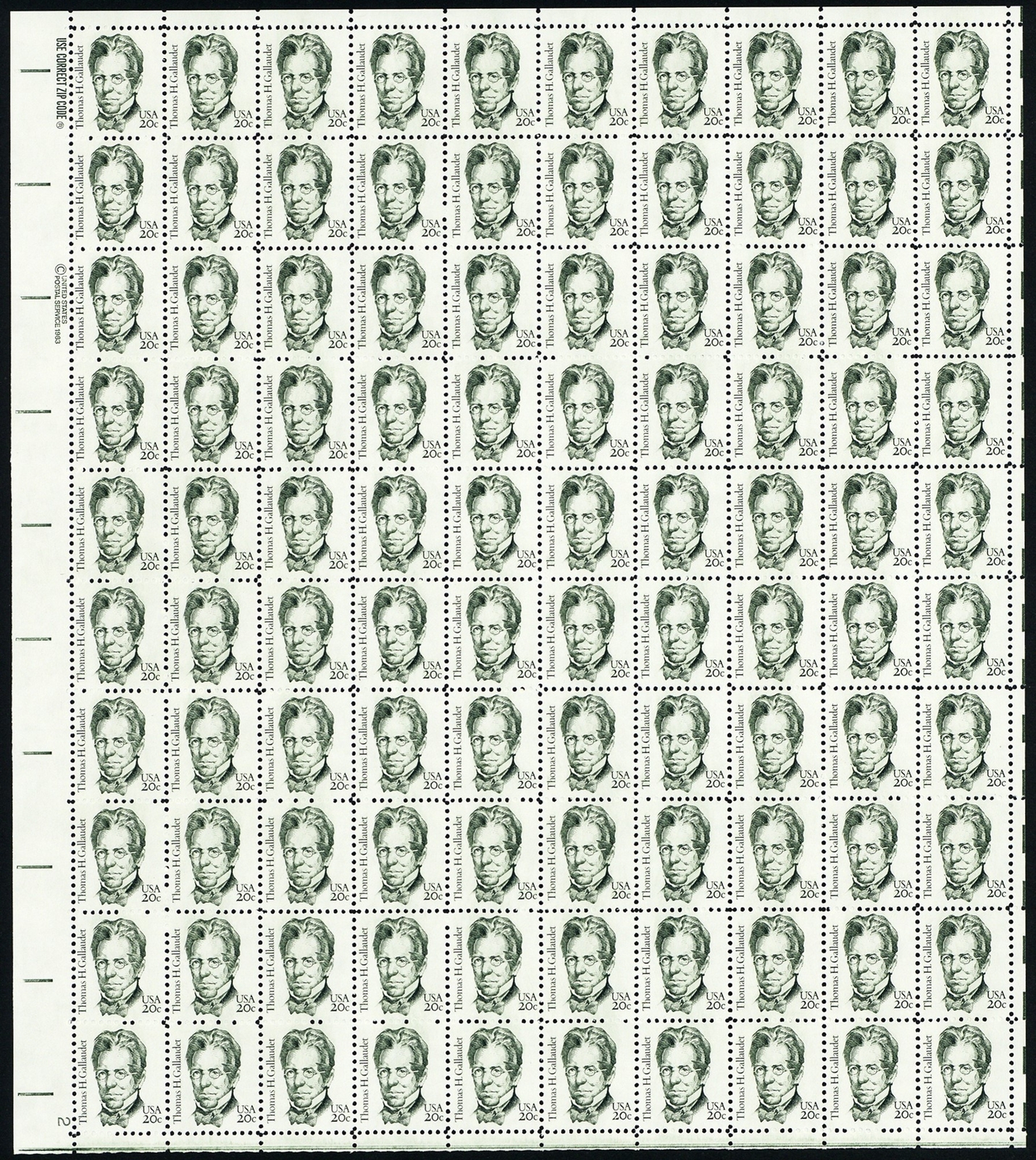 Thomas H. Gallauder Sheet of One Hundred 20 Cent Postage Stamps Scott 1861
