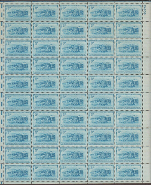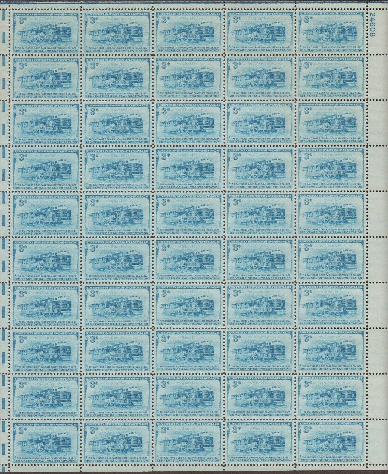 Three Stages of Rail Transportation Sheet of Fifty 3 Cent Stamps Scott 1006