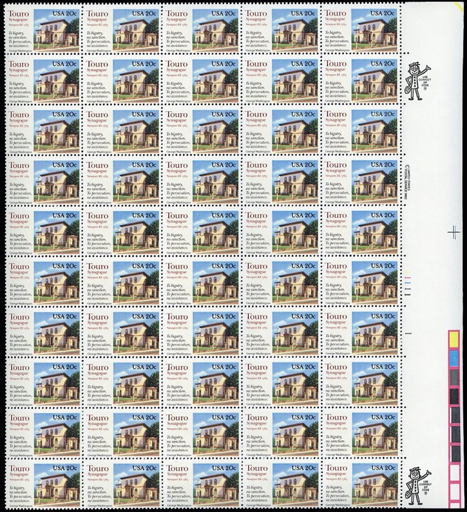 Touro Synagogue Sheet of Fifty 20 Cent Postage Stamps Scott 2017