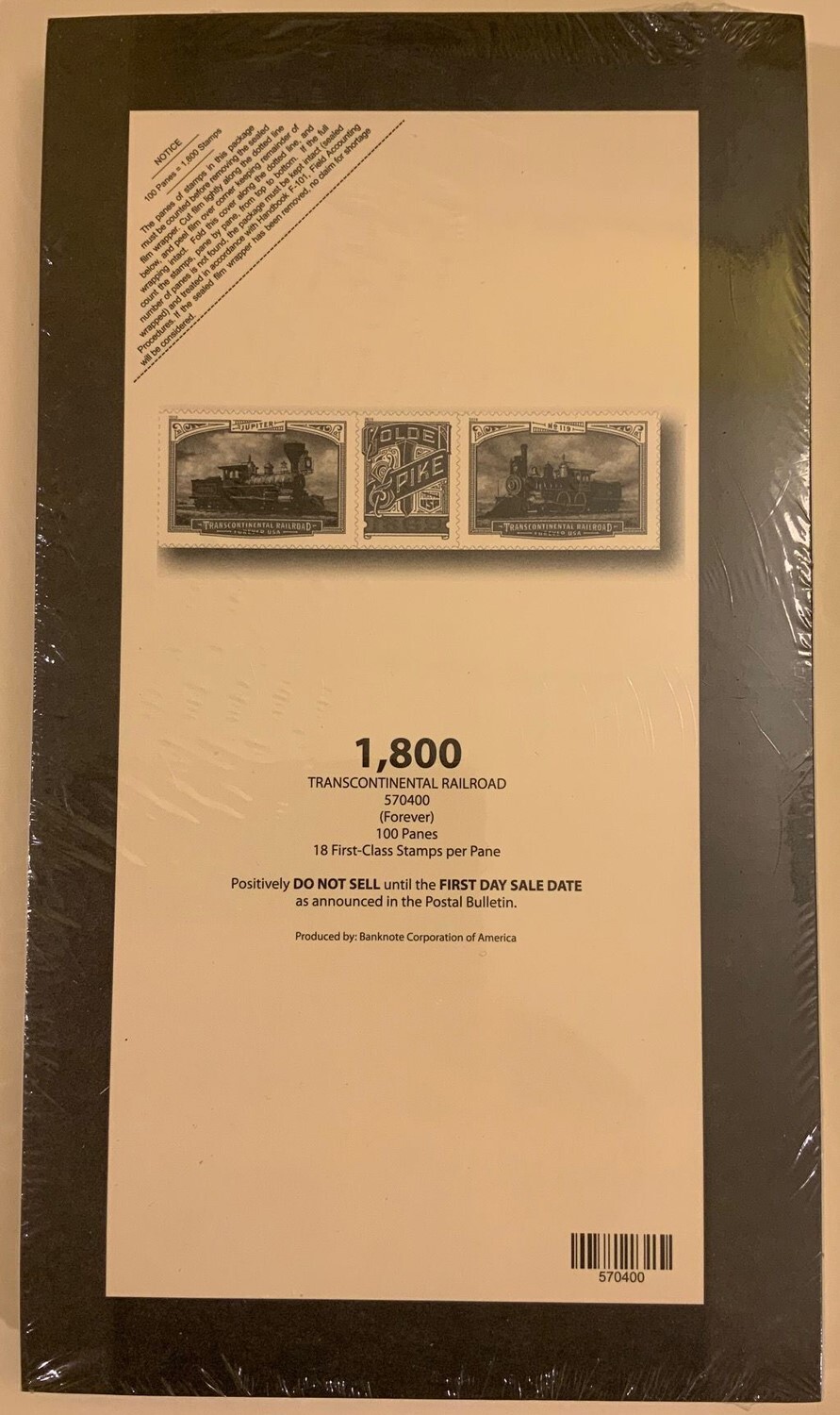 Transcontinental Railway Full Sealed Pad of 100 Sheets (1800 Stamps) Scott 5380