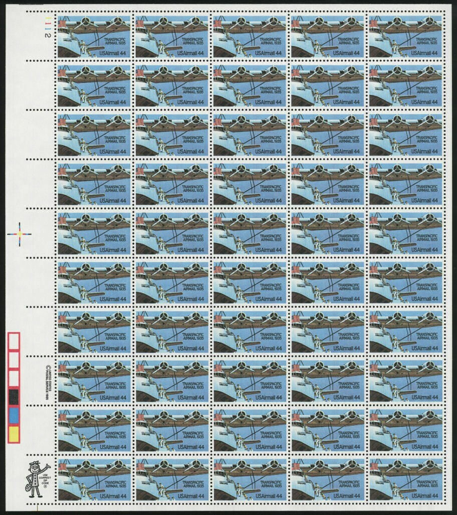 Transpacific Sheet of Fifty 44 Cent Airmail Postage Stamps C115