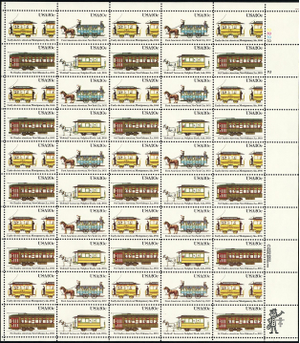 Trolley Street Cars Sheet of Fifty 20 Cent Postage Stamps Scott 2059-62