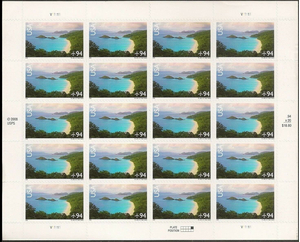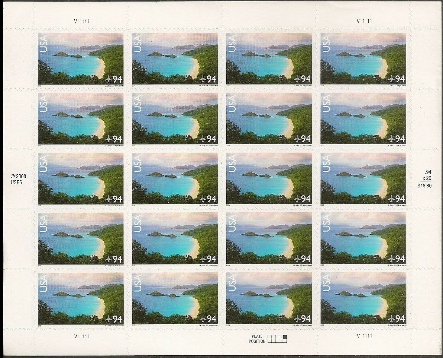 Trunk Bay Virgin Islands Sheet of Twenty 94 Cent Airmail Stamps Scott C145