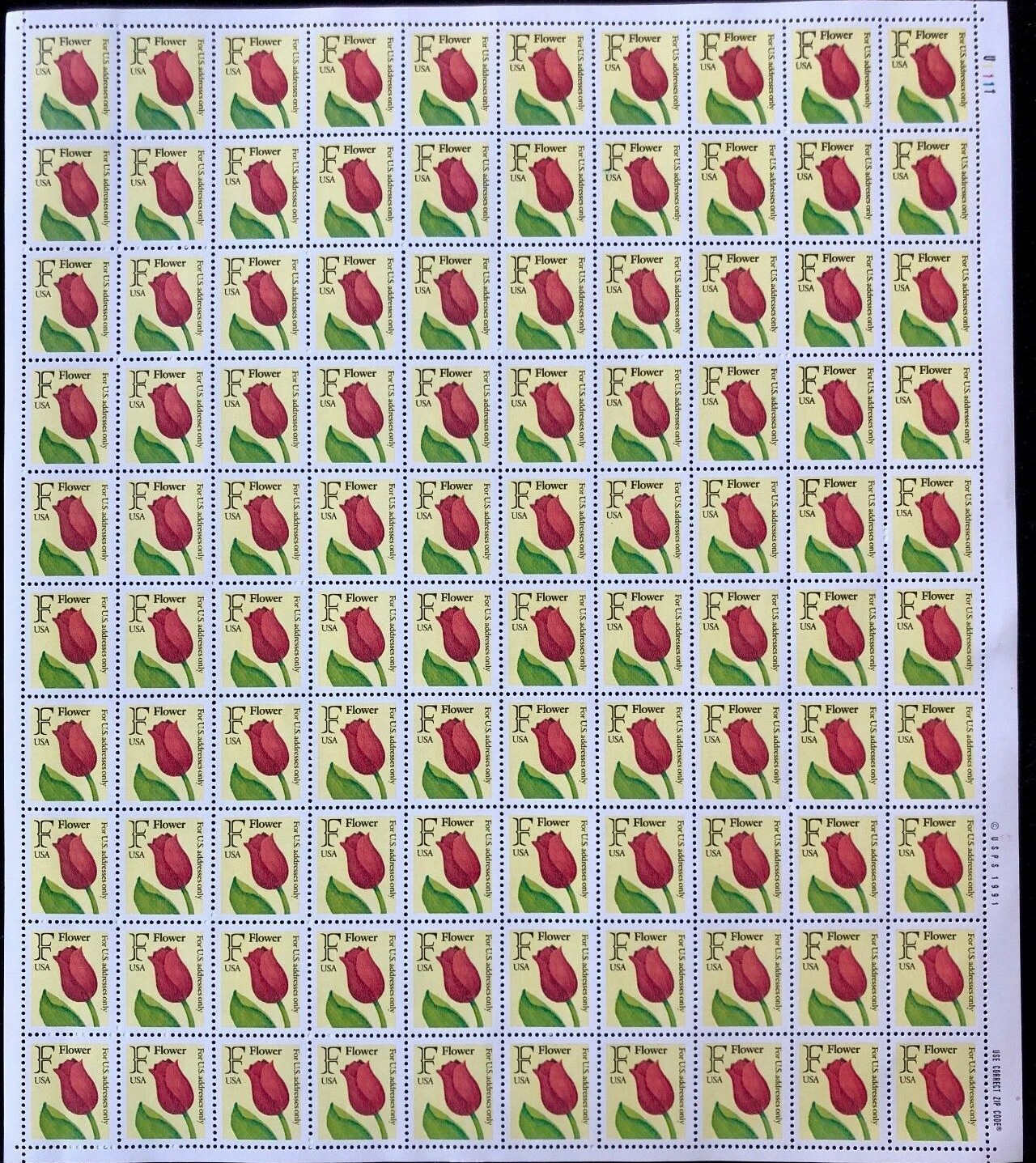 Tulip Sheet of One Hundred 29 Cent Postage Stamps Scott 2517