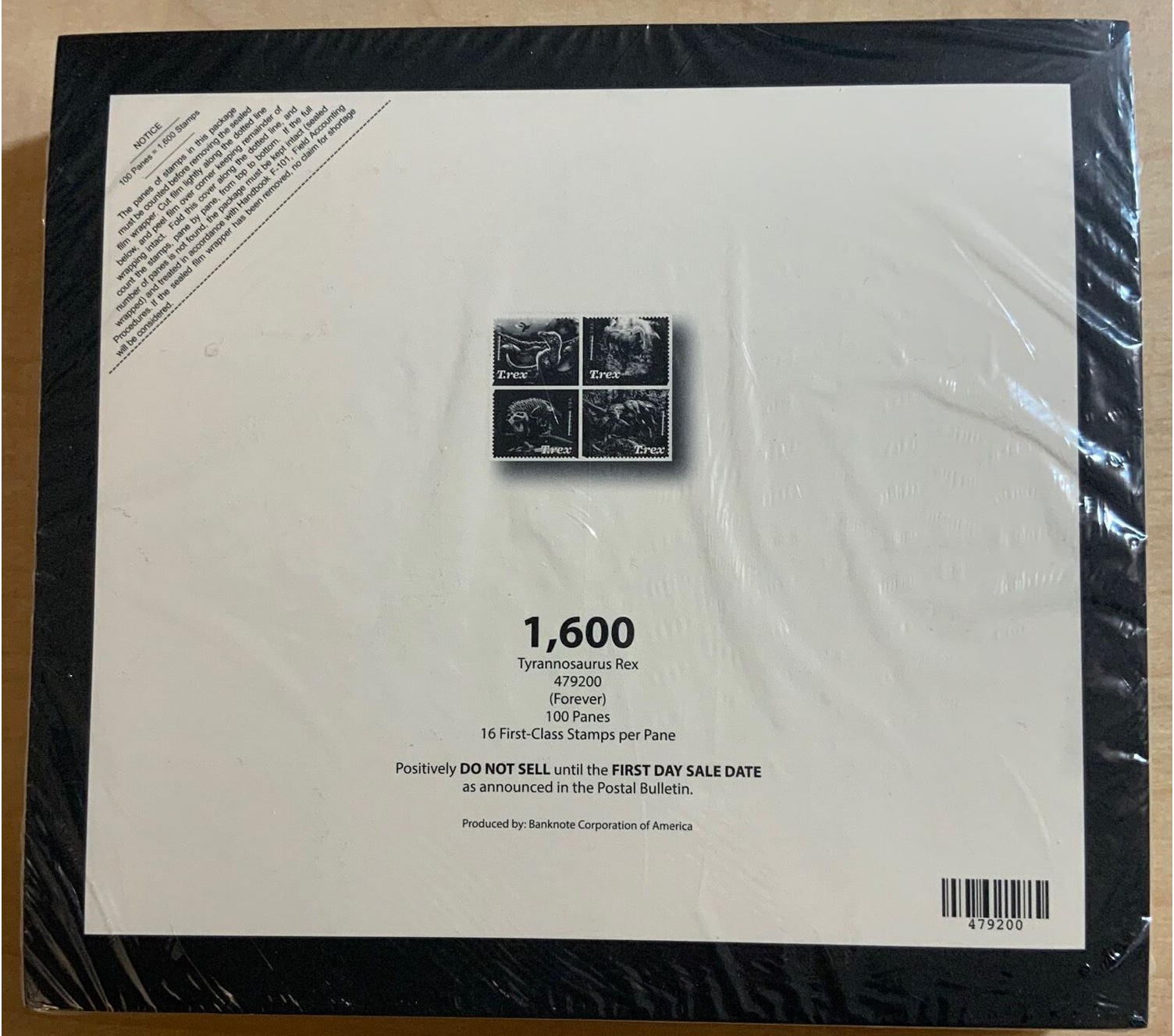 Tyrannosaurus Rex Full Sealed Pad of 100 Sheets (1600 Stamps) Scott 5413a