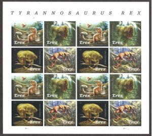 Tyrannosaurus Rex Pane of 16 Current Rate Postage Stamps Scott 5413a