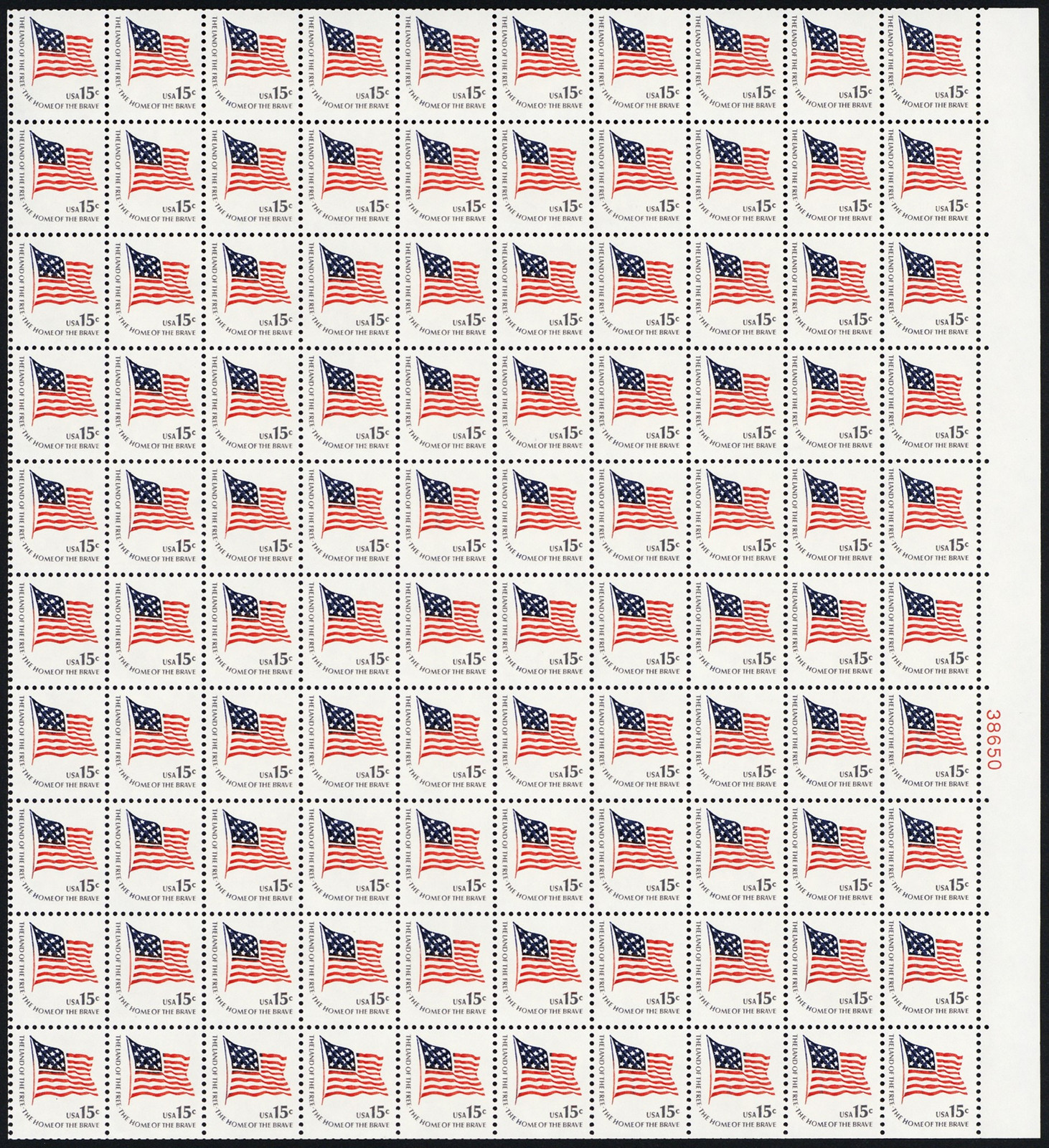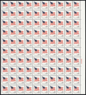 U.S. Flag Sheet of One Hundred 15 Cent Postage Stamps Scott 1597