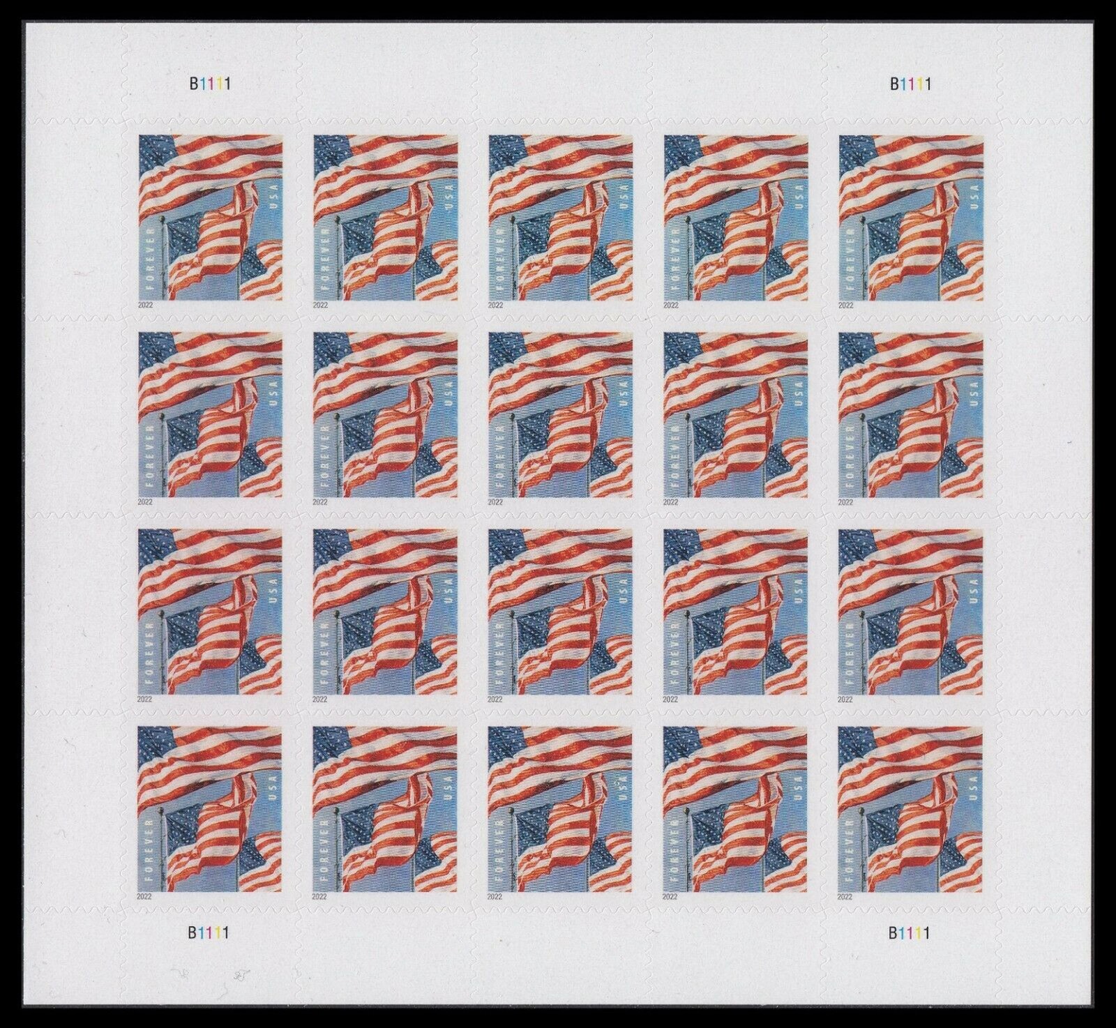 U.S. Flags Sheet of 20 - Postage Stamps Scott 5654