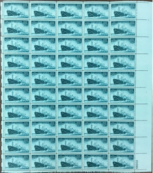 U.S. Merchant Marine Sheet of Fifty 3 Cent Postage Stamps Scott 939