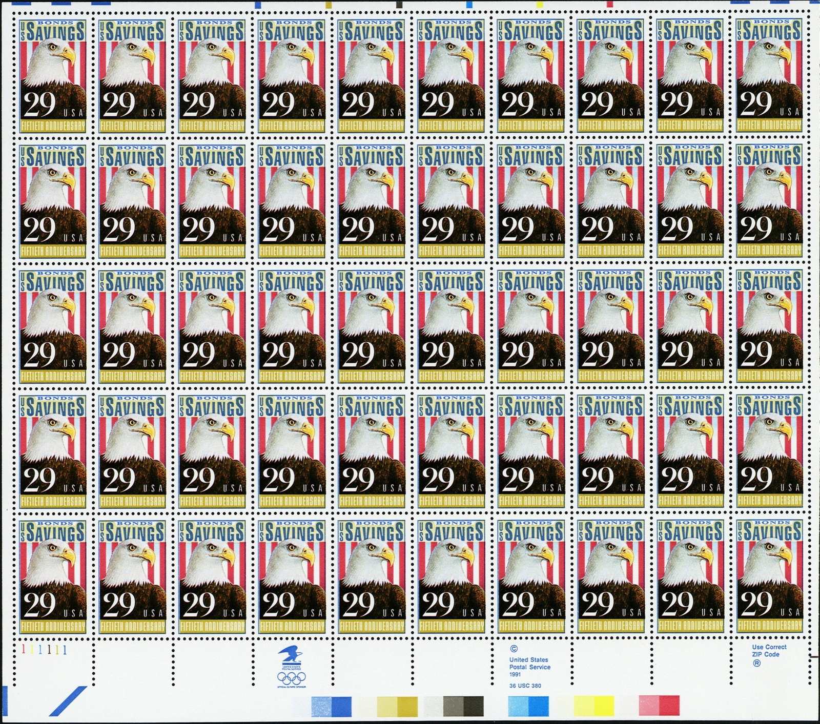U.S. Savings Bonds Sheet of Fifty 29 Cent Postage Stamps Scott 2534