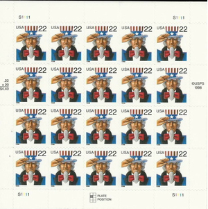 Uncle Sam Sheet of Twenty 22 Cent Postage Stamps Scott 3259