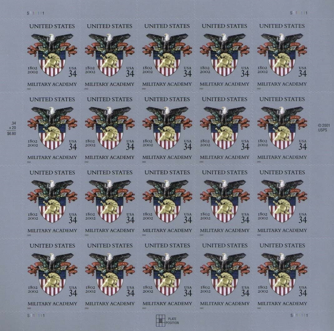 United States Military Academy - West Point Pane of Twenty 34 Cents Scott 3560