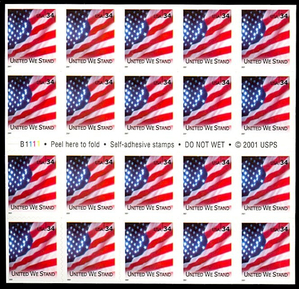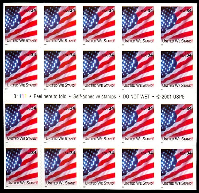 United We Stand & Flag Sheet of Twenty 34 Cent Postage Stamps Scott 3549