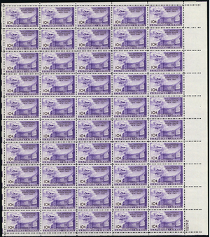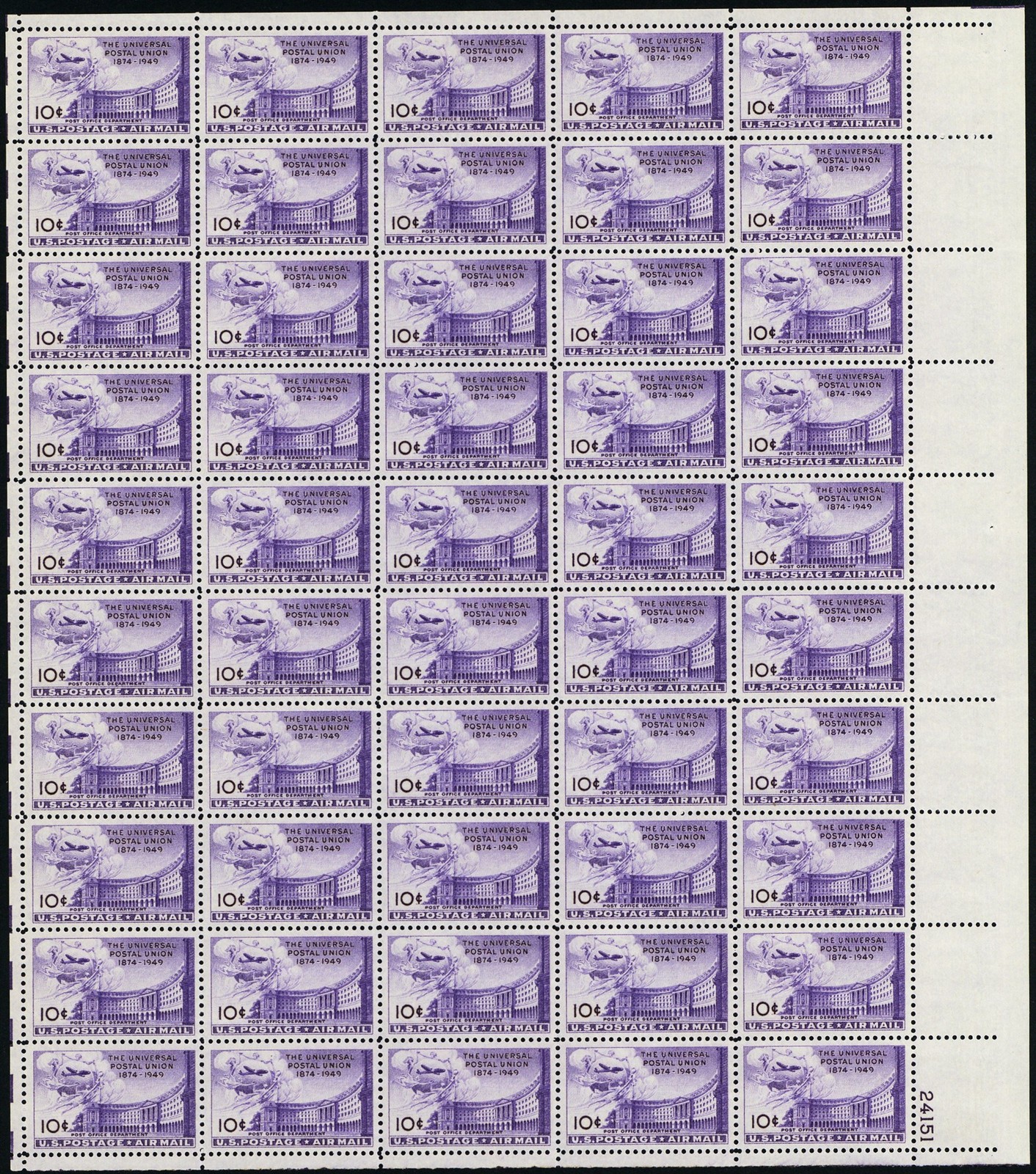 Universal Postal Union Full Sheet of Fifty 10 Cent Airmail Stamps Scott C42