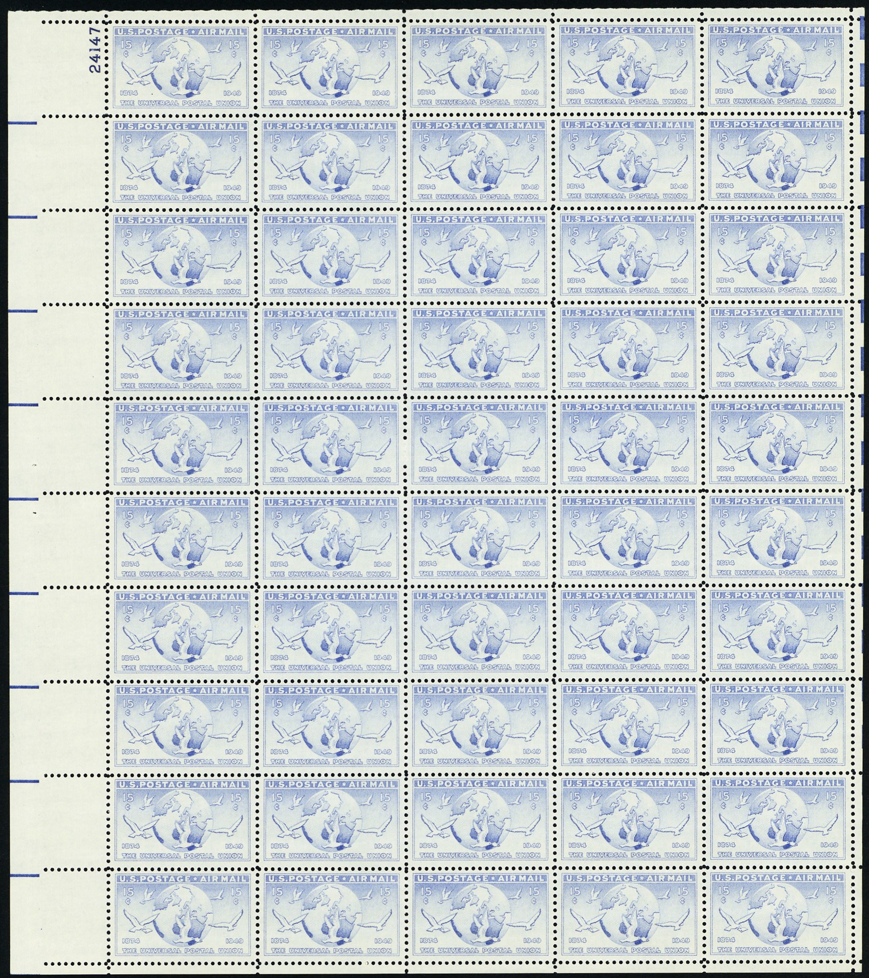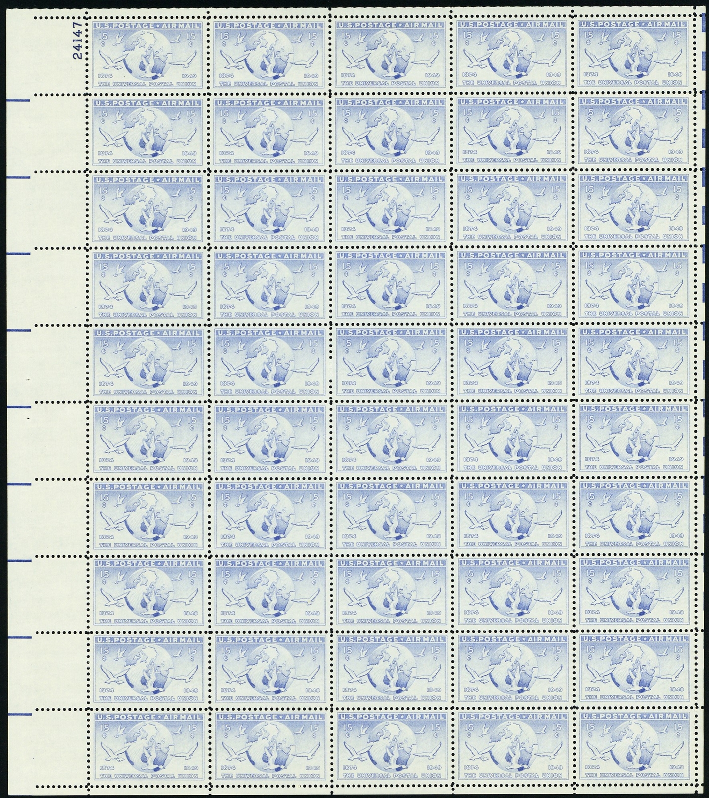 Universal Postal Union Full Sheet of Fifty 15 Cent Airmail Stamps Scott C43