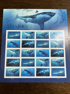 US-SCOTT #5223-27 SHARKS FOREVER SHEET MNH-2017 Full Sheet Of 20 Stamps.