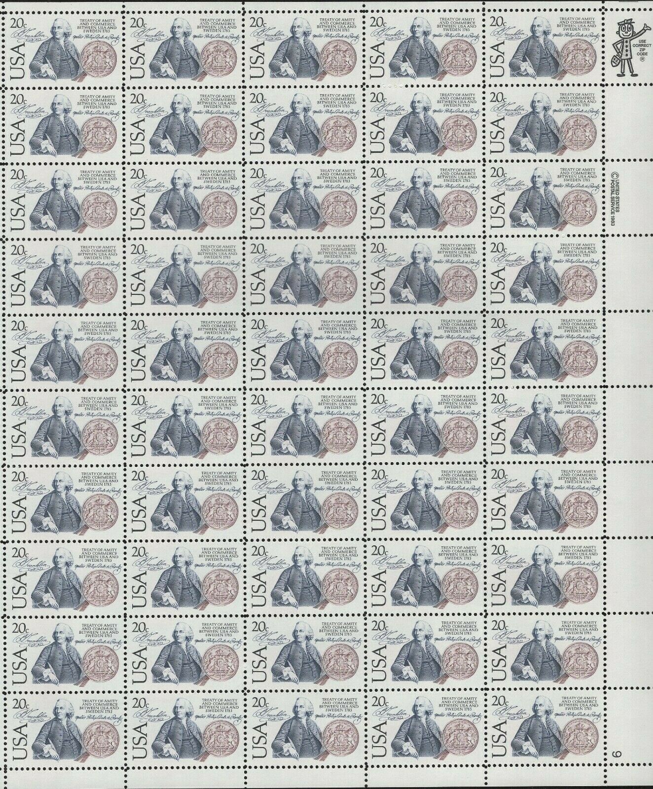 US - Sweden Sheet of Fifty 20 Cent Postage Stamps Scott 2036