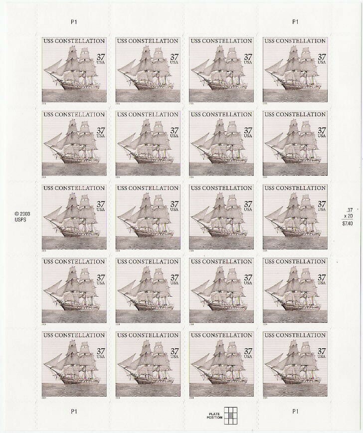 USS Constellation Sheet of Twenty 37 Cent Postage Stamps Scott 3869