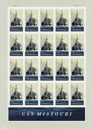 USS Missouri Sheet of Twenty Current Rate Postage Stamps Scott 5392