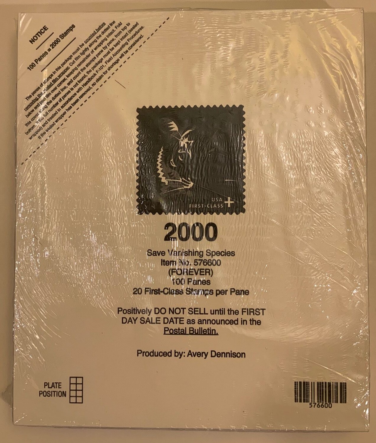 Vanishing Species Full Sealed Pad of 100 Sheets (2000 Stamps) Scott B4