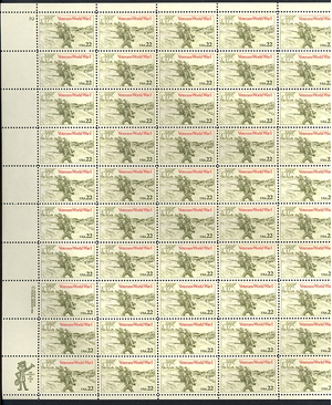 Veterans World War I Issue Sheet of Fifty 22 Cent Postage Stamps Scott 2154