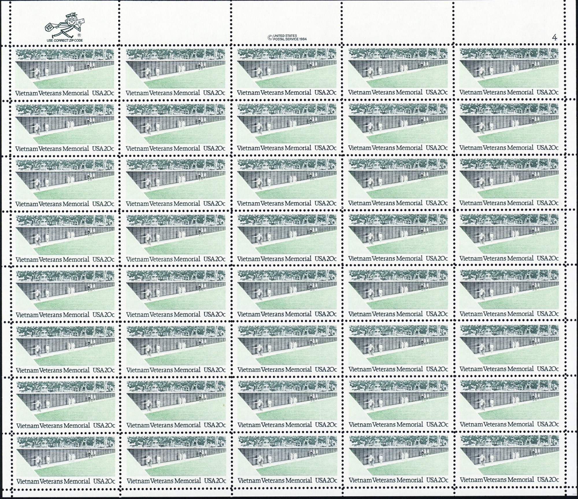 Vietnam Veterans' Memorial Sheet of Forty Different 20 Cent Stamps Scott 2109