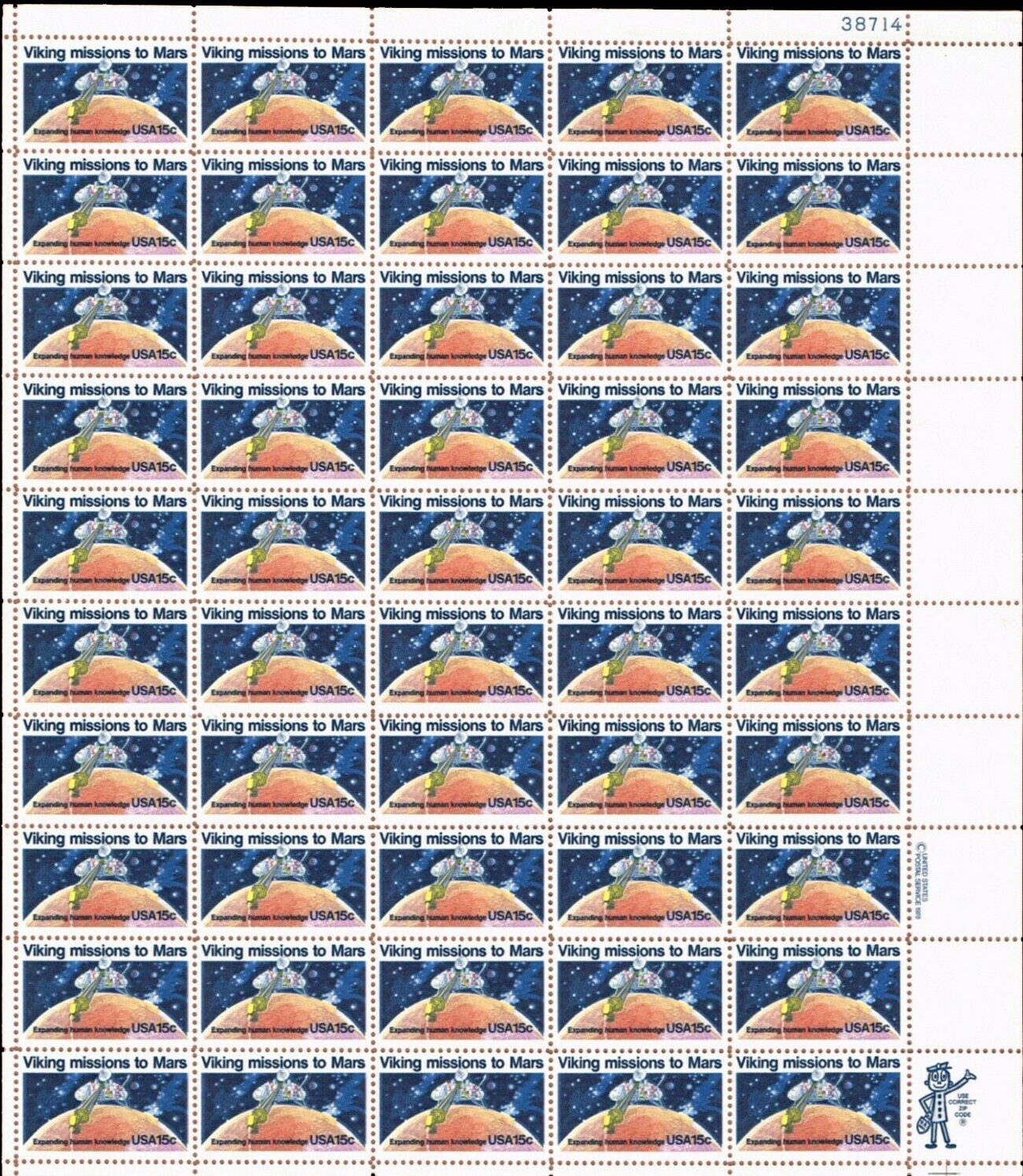 Viking Mission to Mars Complete Sheet Fifty 10 Cent Postage Stamps Scott 1759