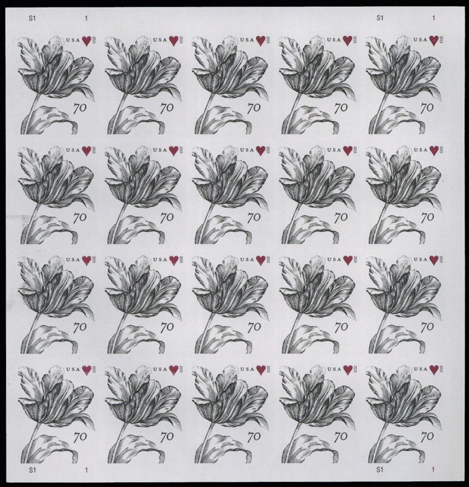 Vintage Tulip Pane of Twenty GENUINE 70 Cent Postage Stamps Scott 4960