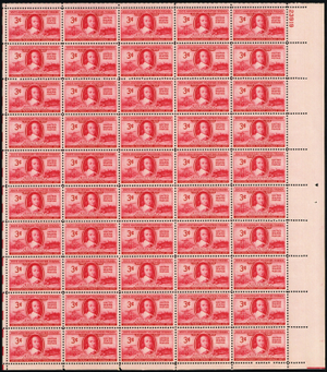 Volunteer Firemen Sheet of Fifty 3 Cent Postage Stamps Scott 971