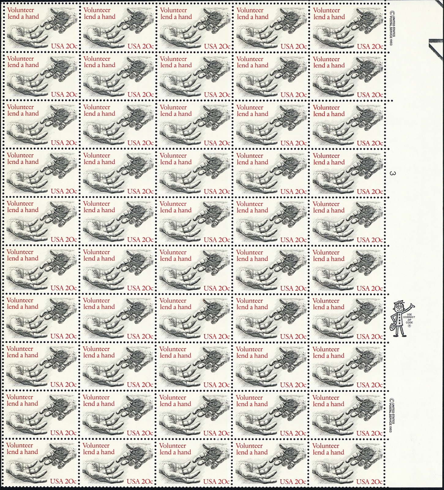 Volunteer Lend a Hand Sheet of Fifty 20 Cent Postage Stamps Scott 2039