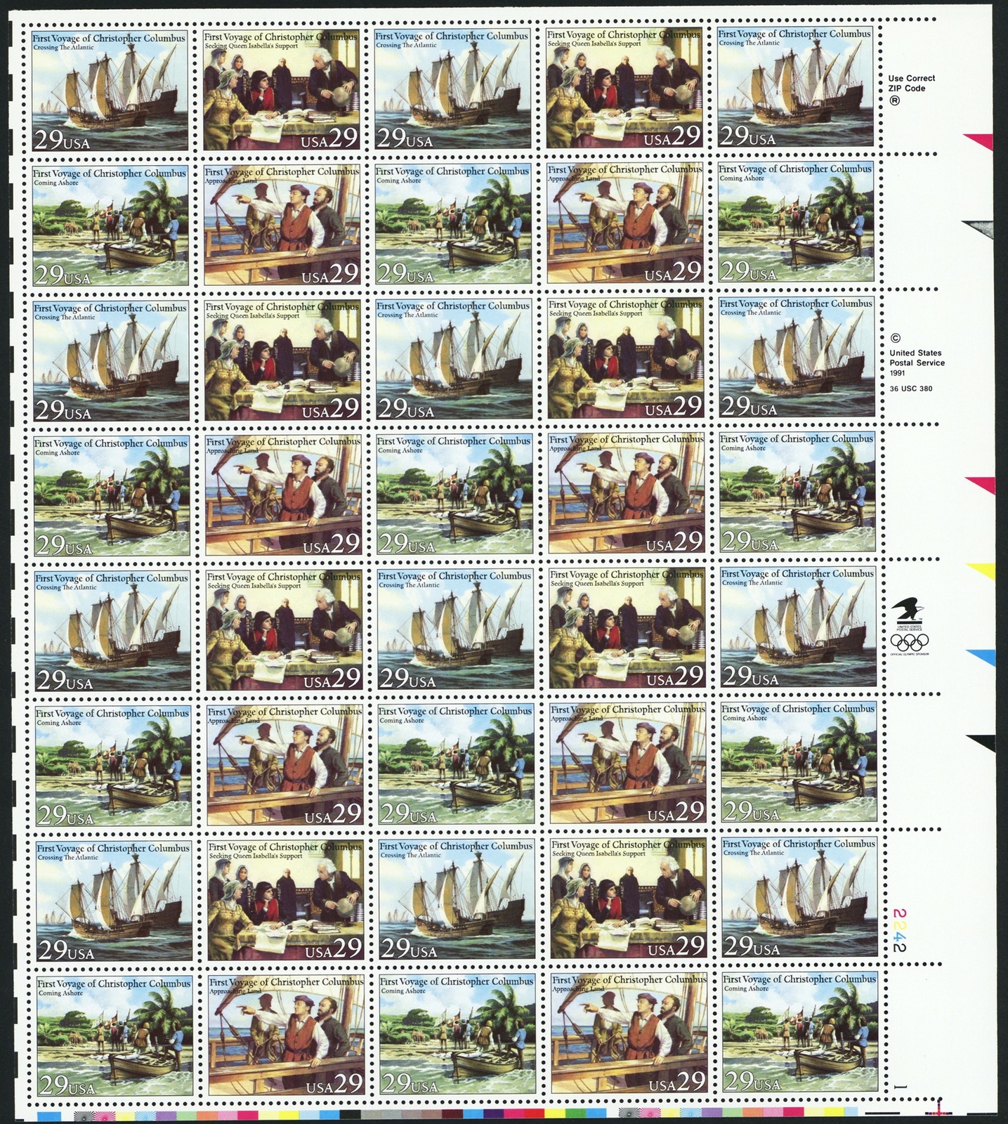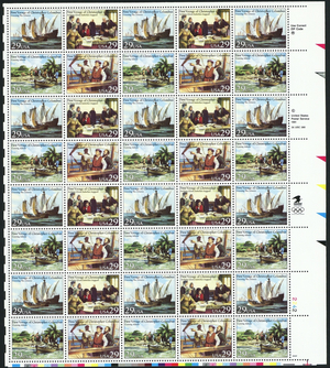 Voyage of Columbus Sheet of Forty 29 Cent Postage Stamps Scott 2623a