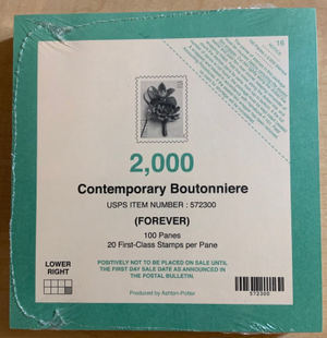 Wedding Boutonniere Full Sealed Pad of 100 Sheets (2000 Stamps) Scott 5457